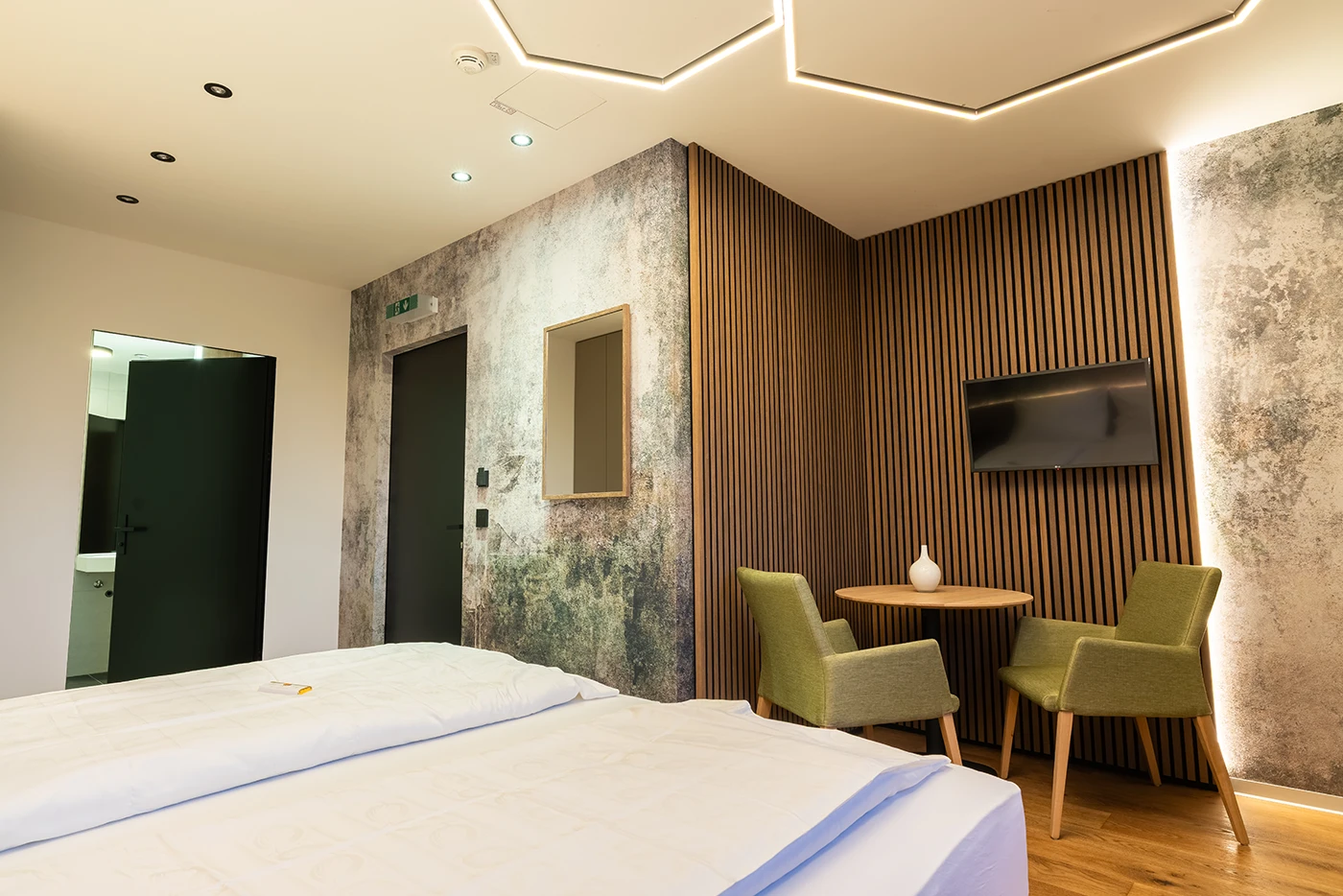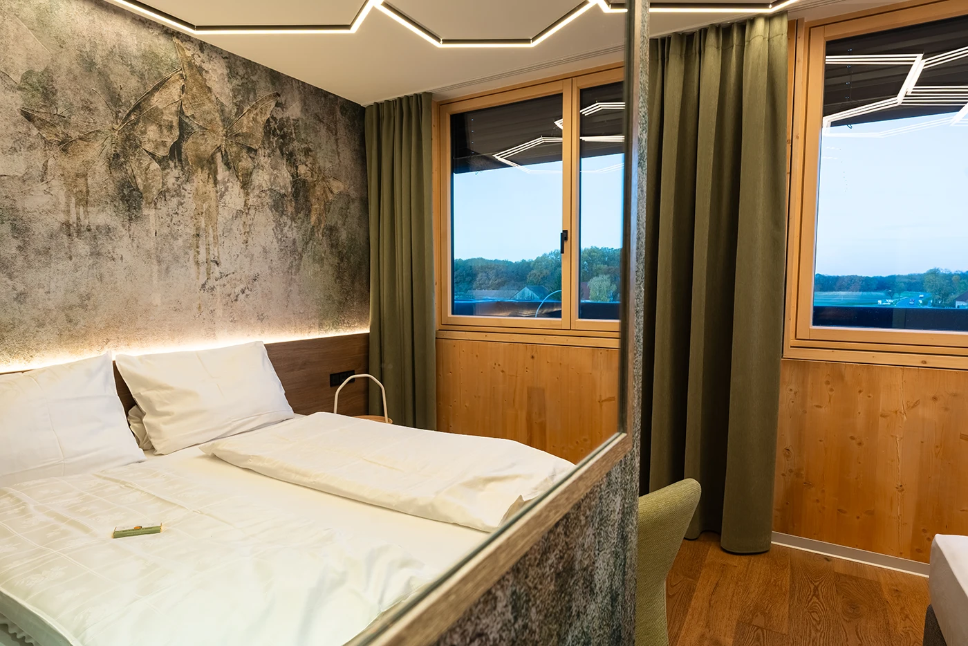 im delta-x findest du Komfort, Nachhaltigkeit und Flexibilität im Herzen des Marchfelds. Unsere fünf stilvoll eingerichteten Gästezimmer sind die ideale Wahl für dich als Seminarteilnehmer:in, Geschäftsreisende:r oder Eventgast.